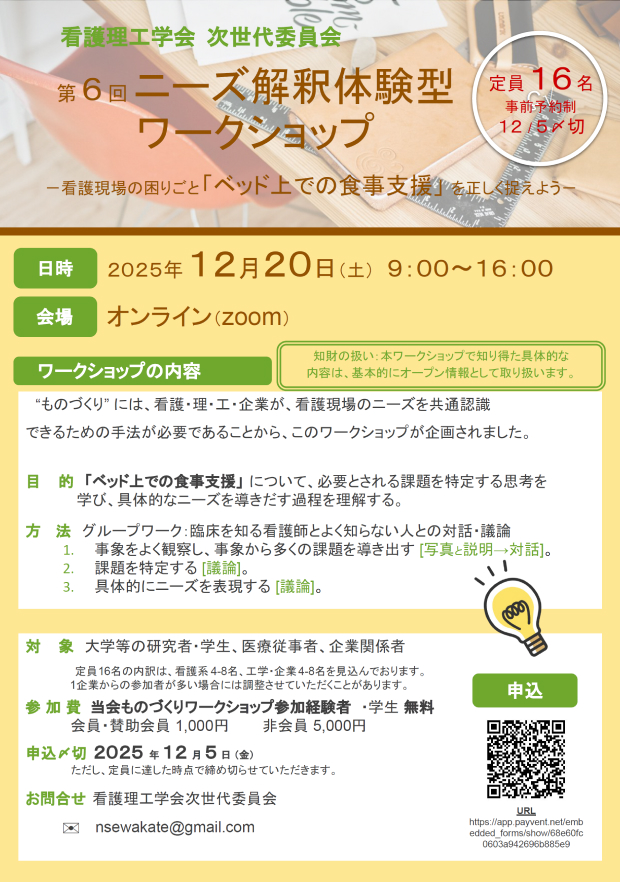 〇当会ものづくりワークショップ参加経験者・学生:無料